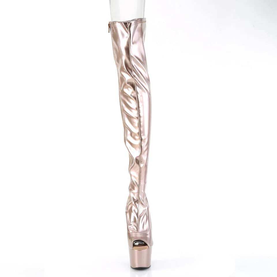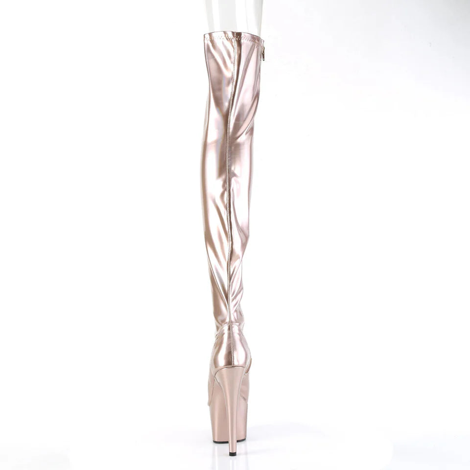 Rose.G Holo/Chrome 7 inch Heel Shoe Details ADO3011HWR/ROGLDHG/M 7" (178mm) Heel, 2 3/4" (70mm) Platform Peep Toe Stretch Thigh High...